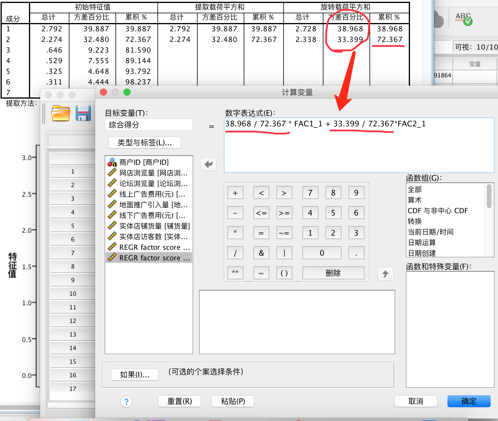 公式:第一個因子占的加權比重數*第一個因子得分+第二個因子占的加權比重數*第二個因子得分