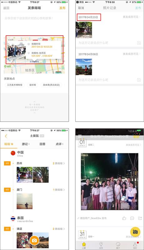 其實,螞蜂窩也有類似的功能,即嗡嗡,它的設計卻更易理解。比如,發布頁面,嗡嗡的拍攝時間和地點用戶很容易理解;而小時光的時間顯示,根本不知道是什么時間。而嗡嗡的時間軸更適合回溯;小時光則太像以發布時間排序的動態流,更適合瀏覽,如下圖所示。