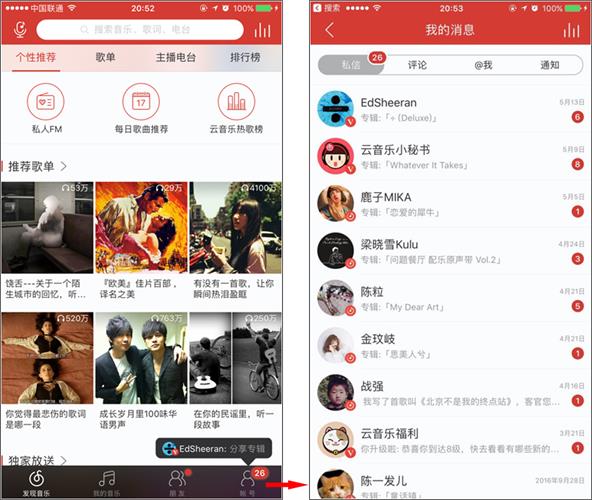當大多數產品的消息提醒都是一級一級的紅點,然后一級一級點擊進去的時候,云音樂沒有這樣做——點擊賬號tab直達要提醒的消息,如下圖所示。