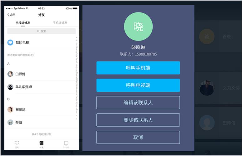 然而,看似合理的方式卻在實施過程中暴露出很多問題,比如用戶每次都得選、手機端面臨非激活狀態等。而當我們拋棄了站在用戶角度的“刻板印象”:為什么一定要先選人?如果不先選人,會有什么問題?后來發現,并不會有太多問題,還在TV助手中強調了TV端的概念,使用戶理解起來更為順暢,如下圖中,好友tab分為手機端好友和電視端好友。