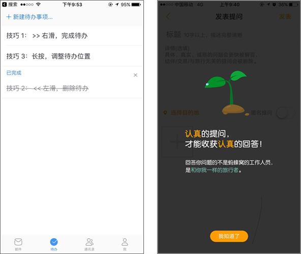 而當很多產品內的功能引導都是“畫條線,指一指,它是什么”時,網易郵箱大師做了直接在功能中做引導學習,螞蜂窩則將產品目標和情感都融入引導中,如下圖所示。