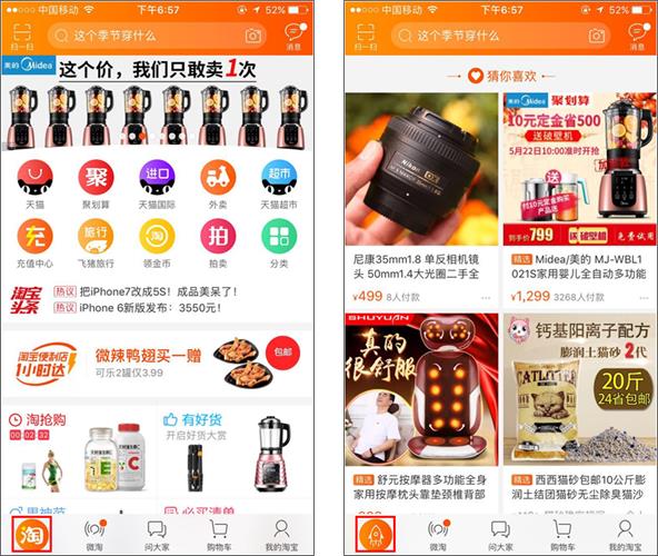 新版淘寶將首頁tab變化為“淘標志”,點擊后再次變化為小火箭的設計,如下圖所示。