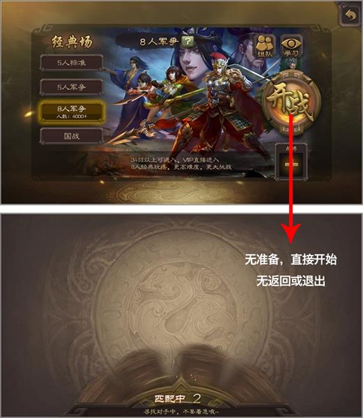 如果只看到表象的“開戰”,不挖掘按鈕背后的根源,就無法持續優化產品的體驗。為什么去掉準備,為什么去掉了匹配中的返回?其實是在追求更快速的開始游戲的方式,從而盡量減少用戶的等待。