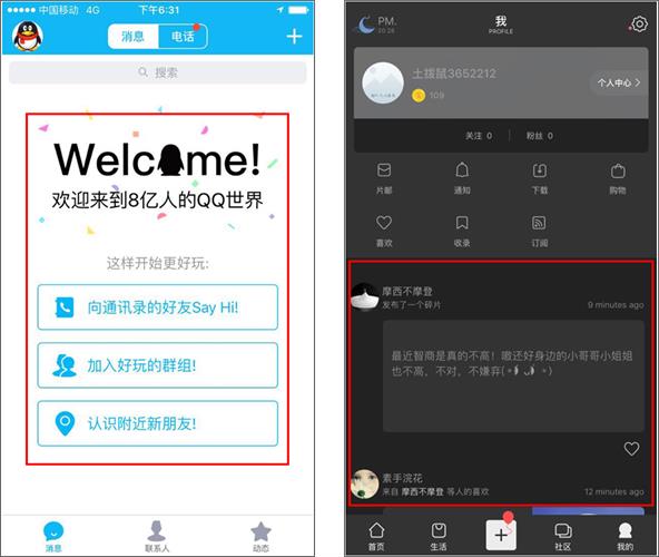 還有很多的例子,比如我們可能都沒有看過qq新注冊時進入的新手頁面;而正常的“我”tab,也會像片刻一樣,給用戶看一些內容,如下圖所示。