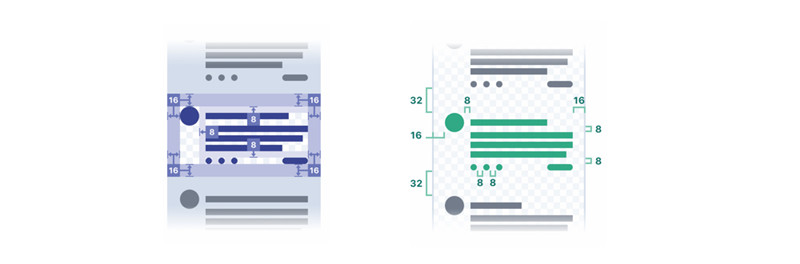 布局中,柵格和間距冥實是息息相關的。可以這么理解兩者的關系,柵格定義的是布局中大棋塊的邏輯性定位和排布,那間距定義的是版面中所有細節的間距、步進、適配 #以8pt柵格舉例,柵格中定義了安全距離、列寬、水檣等基本詞的值 # 都是以8為基本單位然后進行步進,那么在間距中,元素與元素之間的距離就可以定義成8的倍數,所有元素之間的間距都是8的倍數。就可以讓轚個界面的設計*有節奏,在定義元素尺寸的時候有非常強的邏輯性支捋,在一致性上也會很好的達到。