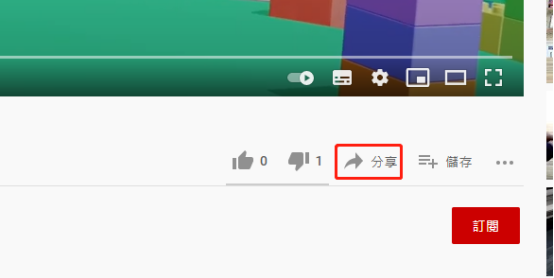 第一步:打開任意的youtube的視頻網頁,在視頻的右下角有分享的功能,如下圖所示: