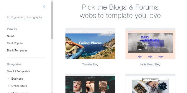 Wix是我們最喜歡的博客平臺,盡管它被設計為一個網站構建器,可以滿足各種網站需求。像所有Wix網站一樣,您必須選擇一個模板來通知您博客的一般設計。