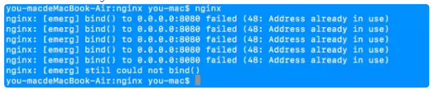 - nginx: configuration file /usr/local/etc/nginx/nginx.conf test is successful