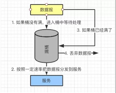 數(shù)據(jù)報(bào)可以按照任意的速度流入桶中,如果數(shù)據(jù)報(bào)的容量超過(guò)了桶的容量,再流入的數(shù)據(jù)報(bào)將會(huì)被丟棄。