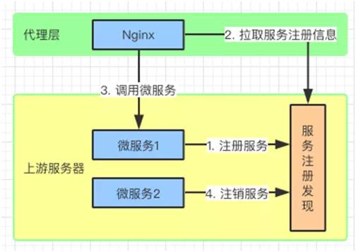 微服務(wù)首先會(huì)注冊(cè)到“服務(wù)注冊(cè)發(fā)現(xiàn)”中心(Consul,Eureka)。注冊(cè)中心包含微服務(wù)的信息,Nginx 會(huì)定期從這里拉取服務(wù)信息(Lua)。