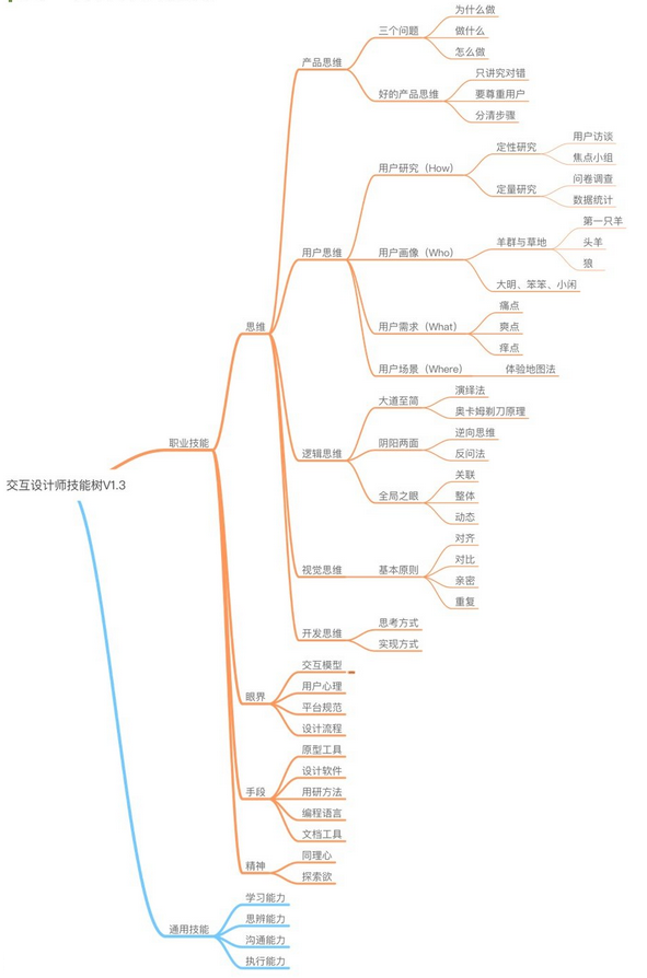 為正在成長中的新人交互設計師、希望轉行交互的同學提供一份“技能樹地圖”,讓你們能夠從全局性的視角去觀察這個職業,也能知道自己應該怎么學習和進階;