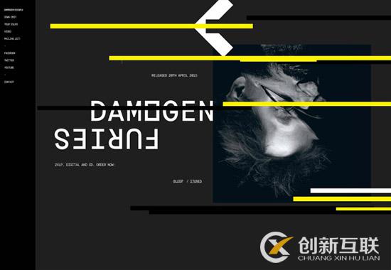 當(dāng)然,你還可以在Squarepusher 的網(wǎng)站看到相對不同尋常一些的縱向菜單設(shè)計(jì)。導(dǎo)航被設(shè)計(jì)成標(biāo)簽頁,訪客可以通過滾動切換,這是一種更為線性的導(dǎo)航欄設(shè)計(jì)。