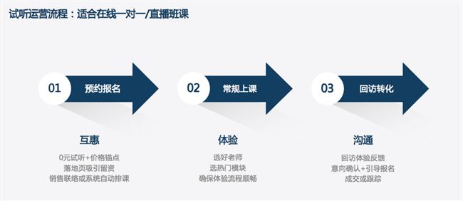首先是獲取用戶線索。無論是在線一對一還是在線大班課,吸引用戶留下線索的方式是包裝出一個免費課程,稱為試聽課,底層邏輯是互惠心理,只要是有需求的用戶,就有可能因為免費以及對比包裝原價,在產品投放的渠道預約報名。