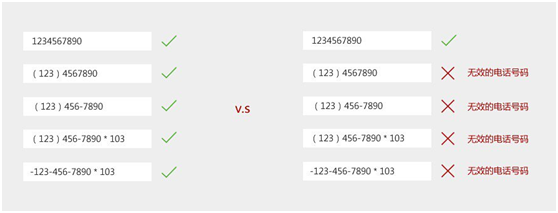 希望用戶按照某種格式填寫時,如“請采用xxx-xxx-xxxx的格式”,記住一定不要麻煩用戶。為什么不直接把輸入框設置成那種格式,用戶只要輸入其他都不用管?事實上,更好的方式是直接放寬對用戶輸入的要求,包括格式、大小寫等。讓你的系統更靈活,而非讓用戶為了你改變他們的輸入習慣。