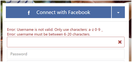 如果用戶填寫錯誤,應該明確說明是什么問題。如下圖facebook的用戶名輸入框,為空時會顯示用戶名無效,和應滿足的要求。