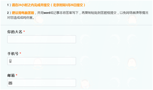 以及一些其他說明,告訴用戶填寫表單能獲得什么好處;貼心的提醒(如填寫完表單大致需要的時間)。