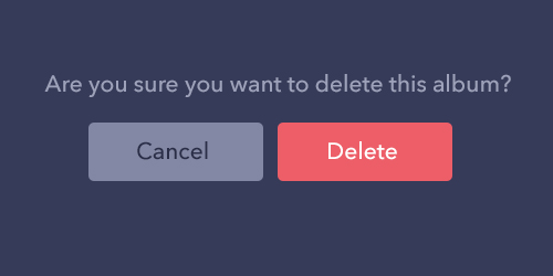 在下面的例子中我們使用了紅色的按鈕顏色表現一個潛在的具有破壞性的動作。并且,主要動作不但可以通過顏色和對比度去引起注意,還可以看它是否置于對話段落的右邊。