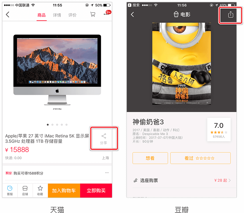 下面我們會從不同維度來分析一下APP的社交分享功能設計,看看這里面有哪些值得探討之處。