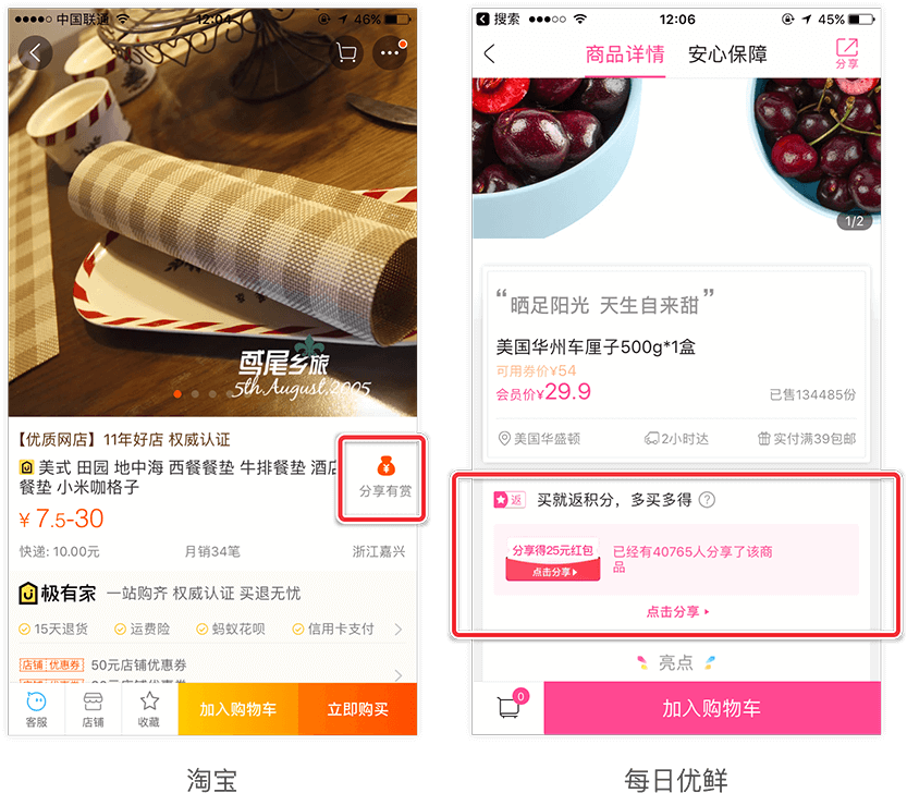 絕大多數APP都是在詳情頁等需要分享的頁面放置一個分享按鈕,由用戶自行選擇分享。這種情況下用戶是否分享主要是取決于產品內容本身,比如內容有趣或是有用。