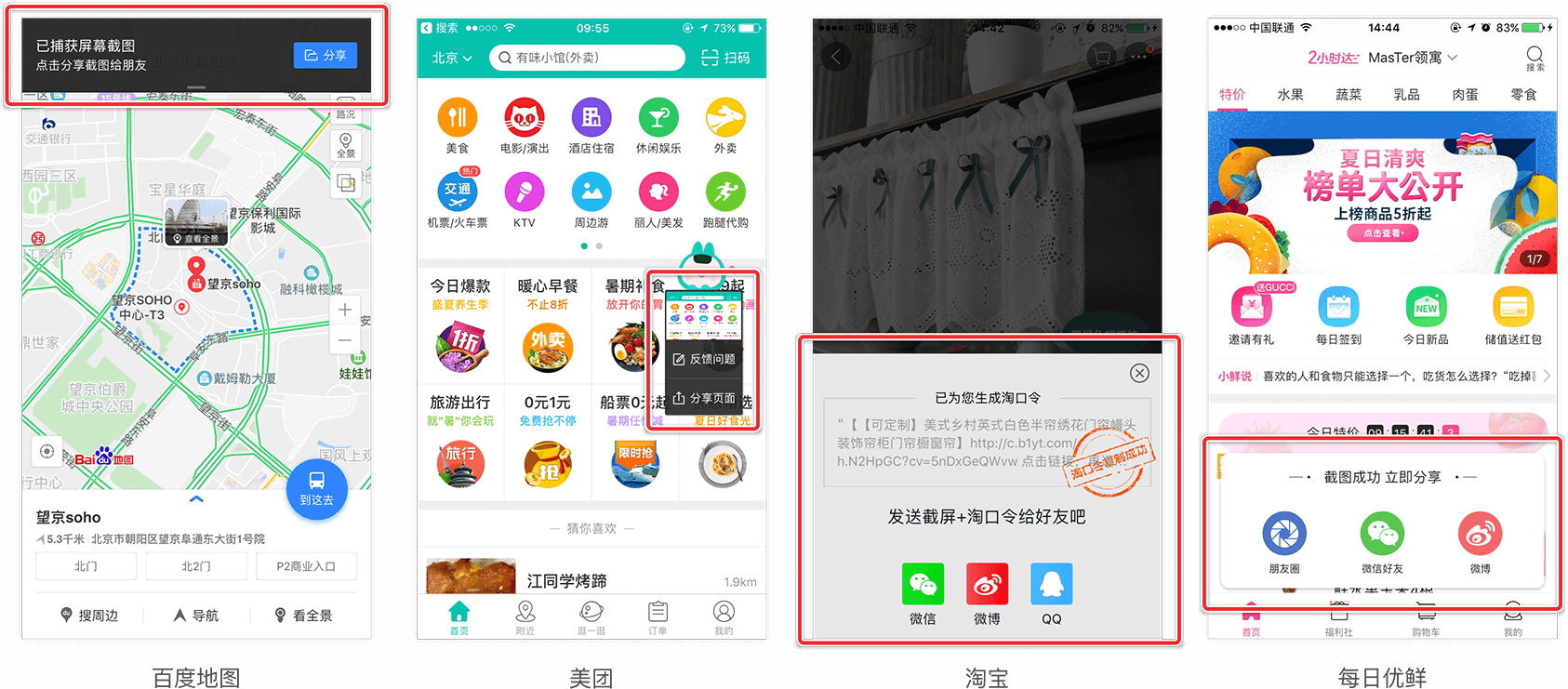 認真分析用戶行為,找準分享時機,比如截圖時和用戶完成目標時就可以引導用戶分享。在不同場景下需要提供最恰當的方式和內容來讓用戶進行分享,會更受用戶青睞。