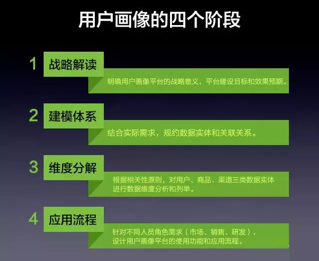 具體來講,當(dāng)為用戶畫像時,需要以下四個階段: