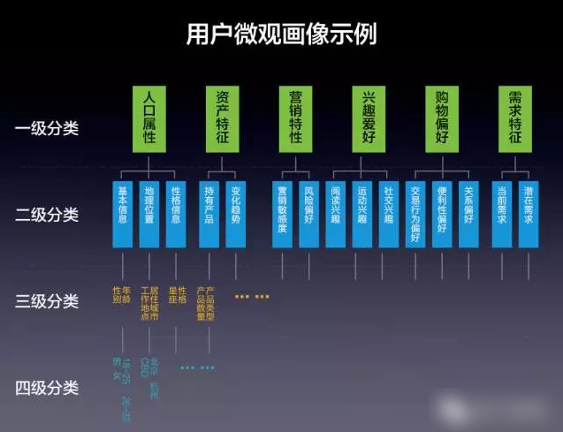 首先我們從微觀來看,如何給用戶的微觀畫像進行分級呢?如下圖所示