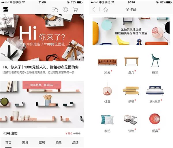 售賣原創設計家居品牌的平臺。不知道有多少人像我一樣,去宜家買東西,只會選擇一些小玩意,大的家具不太會去選擇宜家的。因為宜家的一些大家具,材質以刨花板和密度板居多,用久了就容易變形。其實性價比不是太高。一些大的裝飾城里的家具感覺又太普通,缺乏設計感。造作上有很多極具設計感的家具,適合年輕消費者。