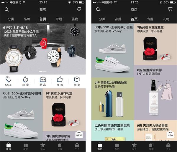 垂直電商的用戶,可能購物的目的性不是很明確,一般都會以逛為主,通過逛發現自己喜歡的一些商品完成購買行為。所以首頁會放置各種形式的商品推薦。推薦形式一般有