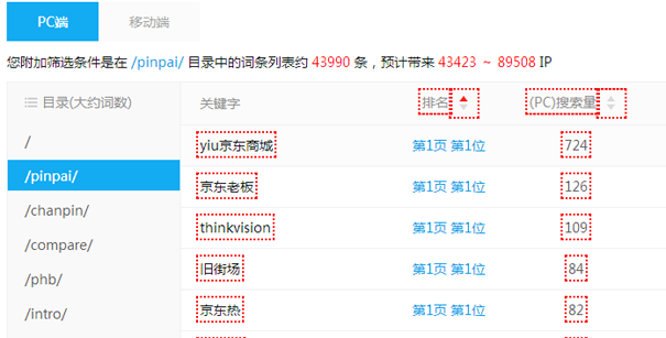我們可以清晰的看到僅/pinpai/這個(gè)欄目頁(yè),就創(chuàng)建了僅 4 萬(wàn)條的關(guān)鍵詞排名,預(yù)估可以帶來(lái)4.3-8. 9 萬(wàn)個(gè)IP。可見(jiàn),有效的優(yōu)化電商網(wǎng)站的分類(lèi)頁(yè)面,從URL的角度給你帶來(lái)源源不斷的流量。