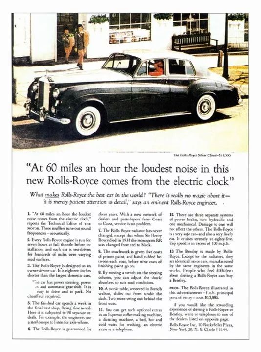 當然,還有經典的,大衛奧格威為勞斯萊斯做的廣告。