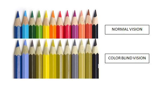 色盲。大多數(shù)常見的色盲(紅色盲和綠色盲)都可以看到藍(lán)色。但是,對于綠色或紅色這樣的顏色,色盲者就不一定能看到了。