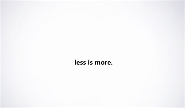 上面這句英文的字體是不是很小?但是你依然能在0.1秒之內(nèi)看到并且讀完。回歸留白主題,一定離不開一句話,less is more.這句話是1930年代一位建筑師路德維希·密斯·凡德羅說的。翻譯過來就是:少即是多。