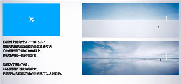 留白的目的就是讓主題更加突出 。配角們死光光,就剩下主角了,配角的戲份都less掉了,主角的戲能不more嗎?所以你可以看到上圖,主角那么一丁點大,但是沒有配角啊,所以當(dāng)然他一個人占了全部的畫面主體了。