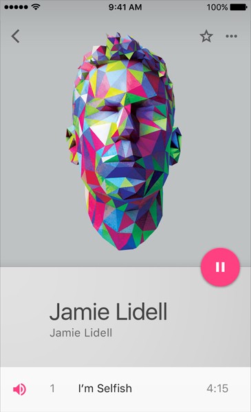 懸浮按鈕用來觸發(fā)應(yīng)用中的主操作。屏幕上的暫停/播放交互使用懸浮按鈕來觸發(fā),說明這個應(yīng)用是一個音樂播放器。
