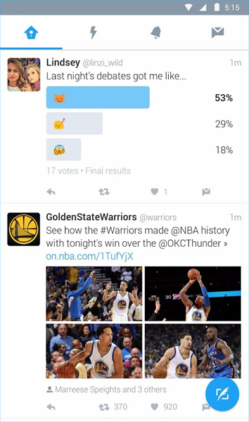 Twitter 就將發(fā)推功能做成了懸浮按鈕。