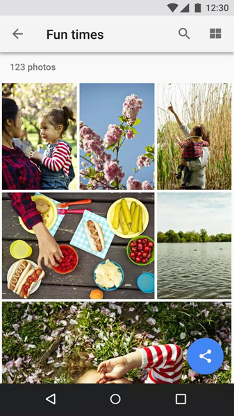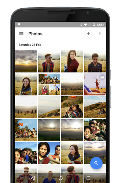 Android 系統(tǒng)中 Google Photos 應(yīng)用就是一個典型的案例。當(dāng)你打開它的圖庫的時候,首先映入眼簾的是用于搜索的懸浮按鈕,這個時候,懸浮按鈕存在2個關(guān)鍵的問題: