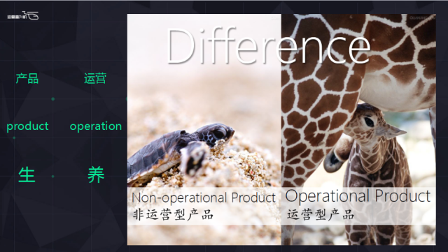 在很多公司產品和運營不分崗位,前一段時間從愛奇藝的朋友那里了解到,愛奇藝沒有運營,只有產品和編輯。這張圖片上是一個海龜,大家都了解海龜生長在沙灘上,靠自己孵化,這是一種非運營型產品,典型代表是工具類的比如說計算器、指南針這類,基本都算是工具類產品。運營型產品,我認為運營是互聯網產品的媽,產品是爹。