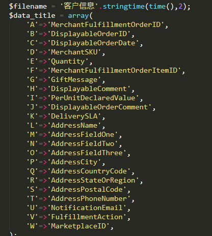 這里是先創建一個表格第一行的標題數組和導出的文件名稱