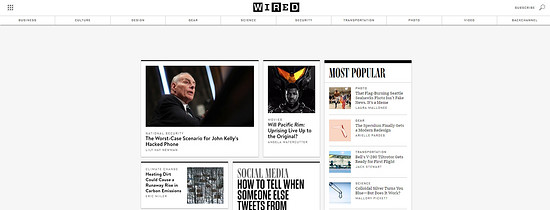 突出品牌的方式有很多,內容是其中很重要的部分,同時視覺和體驗也不容忽略。比如在技術類數字雜志中極為出名的 Wired ,也就是《連線》雜志。獨樹一幟的LOGO,黑白分明的配色融入整個數字雜志的網站設計,和LOGO以及品牌本身遙相呼應。