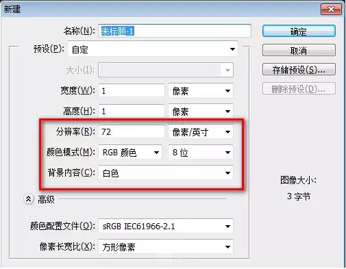 2. 顏色模式RGB 8位(顯示器的三原色紅,綠,藍為RGB)