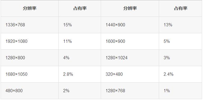 1.標準分辨率:1024px*768px(目前10%-20%的用戶在用)