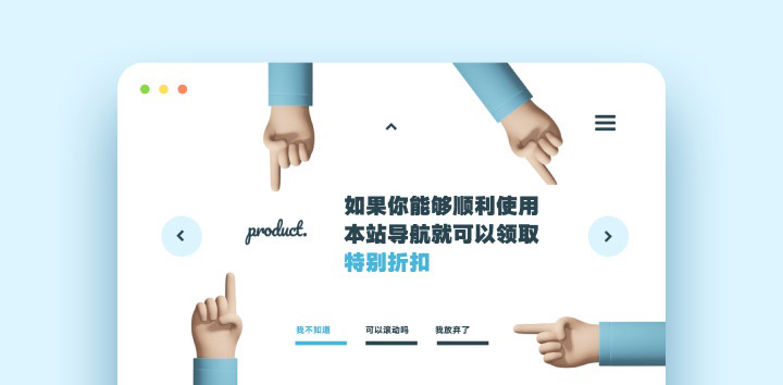 有的網站為了個性,而使用左右或者其它的特別翻頁形式。這樣確實會讓人嚇一跳,但并不會給產品推廣帶來任何超出。用戶發現頁面不是上下翻頁之后,不會注意到產品的介紹,相反,會試著弄清頁面的交互方式:是橫向滑動的嗎?或者我需要點擊某些鏈接才會出現內容?或者只是需要等待?