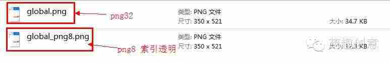 注:為啥使用png32而不使用『png8 alpha透明』?因?yàn)閜c端的網(wǎng)速大多良好,建議使用表現(xiàn)更佳的png圖片,顯然png32是最合適的,當(dāng)然你也可以使用『png8 alpha透明』,但是在高清顯示器下的質(zhì)量不如png32