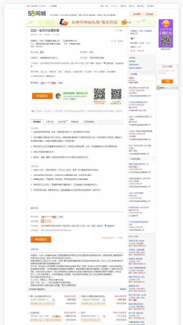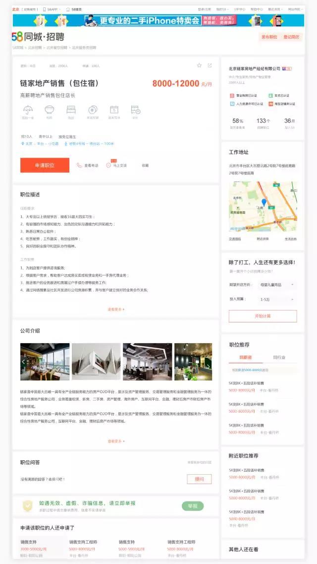 舊版58PC職位詳情頁樣式比較陳舊,在業(yè)務(wù)日益升級(jí)的過程中,在原有頁面中添加了許多功能及類目,使得整體頁面內(nèi)容擁擠、功能不突出、分類不清、邏輯相對(duì)混亂、閱讀成本過高。由此,我們希望通過對(duì)業(yè)務(wù)內(nèi)容的重新梳理與歸類,將詳情頁在業(yè)務(wù)形態(tài)需要及重用戶體驗(yàn)的方向進(jìn)行重新設(shè)計(jì)。