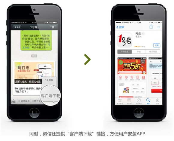 增長9.4倍移動營銷模范毫無疑問,移動互聯網時代京東商城、凡客誠品、一號店、漢庭酒店等一系列代表企業通過移動終端創造了營銷奇跡,不少企業每年在移動終端所創造的收入高達數億!仔細研究這些企業,我們不難發現,他們善于利用每一個移動互聯網營銷工具,尤其是APP和微信公眾帳號。通過微信有效拓展用戶群體,通過APP產生實際的銷售業績,二者結合相互促進。以一號店為例: