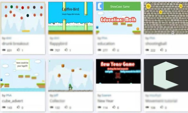 Ceilfire是一個創建H5游戲并分享的平臺,點擊進入你就會看到很多的H5頁面游戲。用戶可以直接在瀏覽器中創建游戲、參與游戲、分享游戲,對于想做簡單的H5游戲的朋友可以用這種方式試試手。就算不做也可以看看已有的H5游戲來找找感覺。