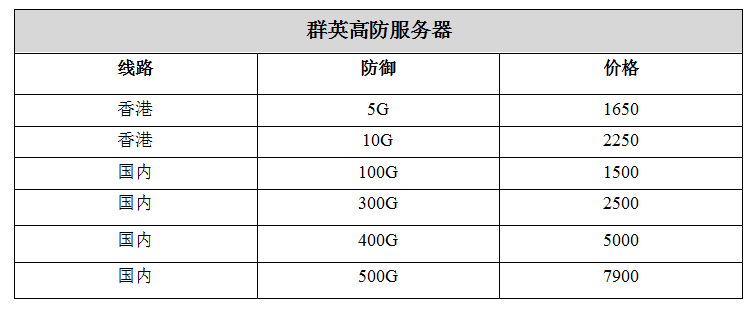 香港:在防御能力上,香港的防御能力無法與國內(nèi)服務(wù)器相提并論,香港的服務(wù)器一般只提供5G~10G選擇。