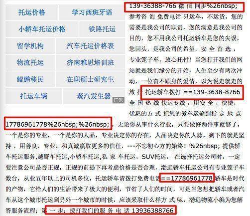 例如很多人喜歡把標題增加一個聯系電話、QQ或這微信。這種方式只有自找死路。也有人自認為聰明,將內容穿插一些聯系方式,或插圖里帶有聯系方式。這種形式都會觸動百度細雨算法。
