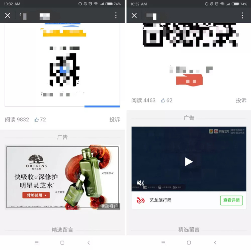 是現(xiàn)在形式最新、并且已經(jīng)公開圖投放的微信廣告形式,或許是目前點擊率高的廣告,畢竟是在文章中插入,無論是存在感還是誤點的幾率都比較高。