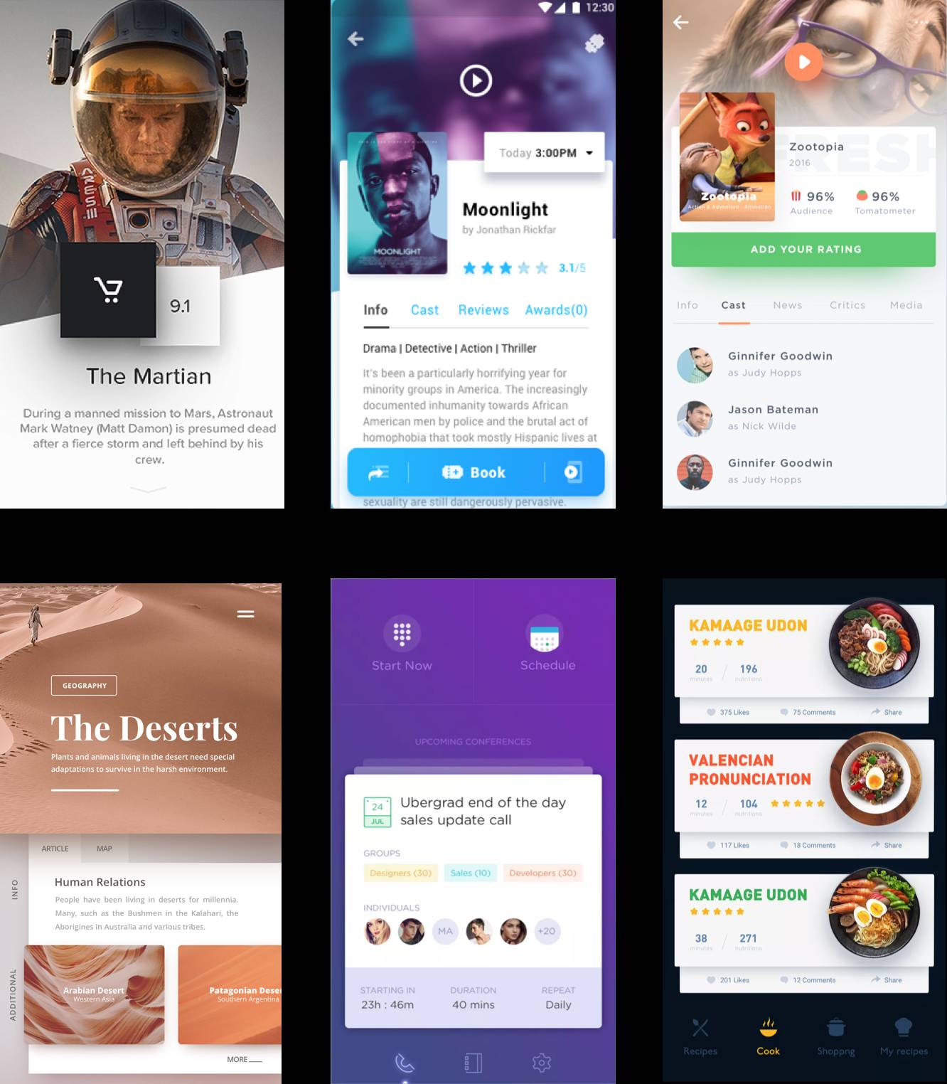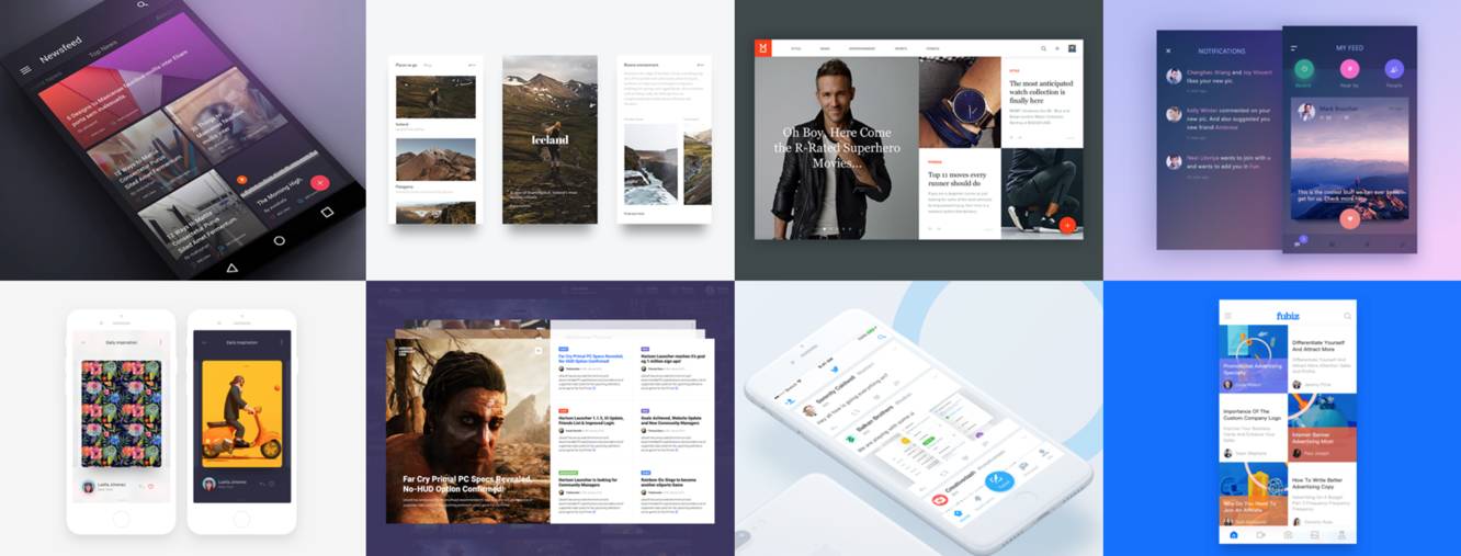 隨著扁平化1.0運用了兩三年,新的扁平化2.0時代,在漸變流行打破了開端,這周研究一些扁平化2.0設計師的移動端設計布局形式,整理分析了一些常用的布局形態。